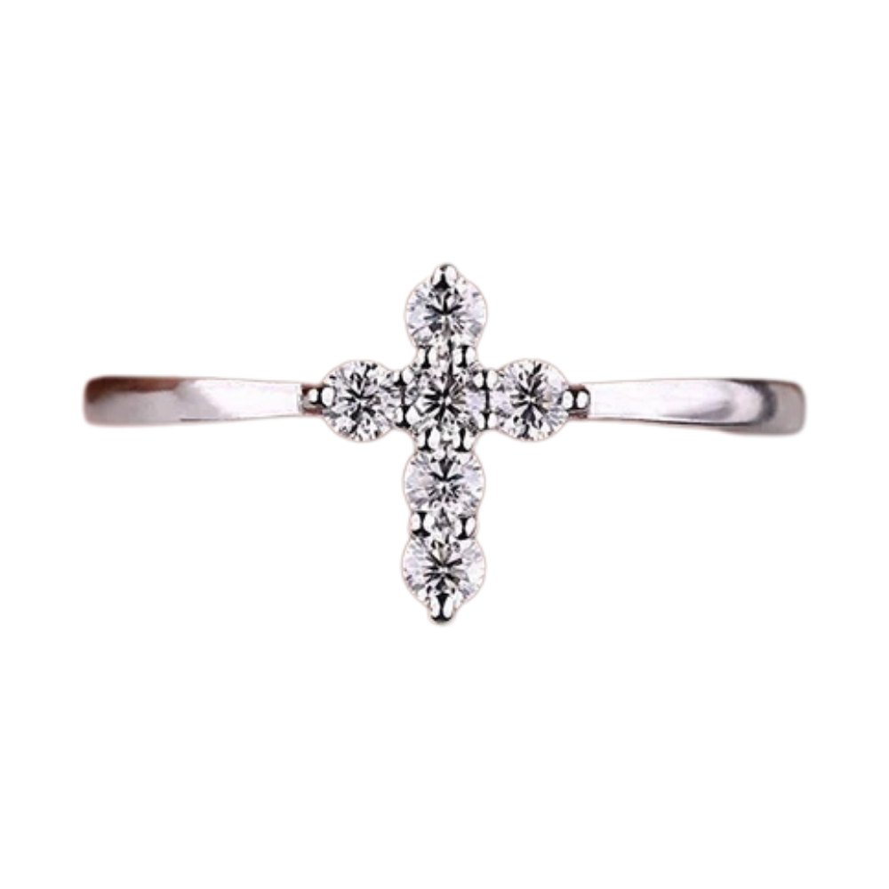 Portez votre foi jusqu'au bout des doigts avec notre superbe bague avec croix en strass argent !