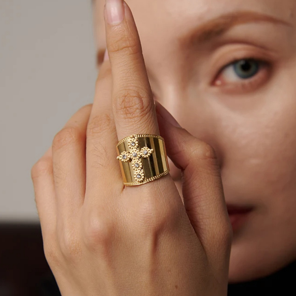 Portez votre foi jusqu'au bout des doigts avec notre superbe bague avec croix style manchette !
