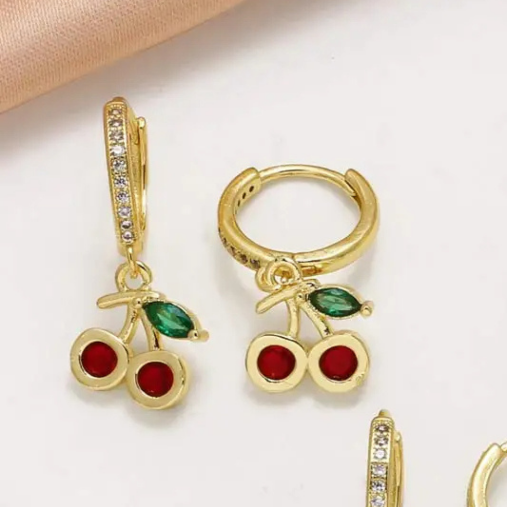 Découvrez nos incroyables boucles d'oreilles créoles à pendentif cerise strass, qui se distinguent par leur simplicité élégante. Les cerises rouges et brillantes sont entourées d’une monture dorée légère en acier inoxydable, accompagnée d’une feuille en pierre verte translucide. Idéales pour celles qui cherchent un bijou discret, mais coloré pour égayer subtilement leur tenue quotidienne.