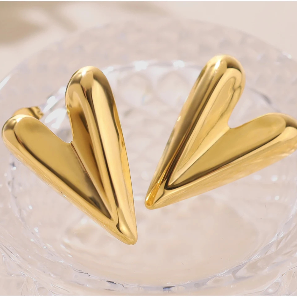 Apportez une note épurée à votre tenue avec nos jolies boucles d'oreilles cœur doré au style allongé. Cette mignonne paire en acier inoxydable doré présente un cœur inversé au design fin et minimaliste, entièrement poli pour une finition lisse et brillante. Ce bijou se porte facilement en toute occasion, ajoutant une touche discrète mais affirmée à votre style.