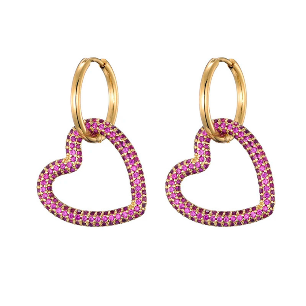 Faites pétiller votre quotidien avec nos somptueuses boucles d'oreilles avec cœur en zircons suspendu. Cette jolie paire présente un pendentif en forme de cœur recouvert de petites pierres scintillantes, de différentes couleurs. Suspendues à un anneau doré discret, elles offrent un contraste coloré idéal pour sublimer un style simple ou festif avec féminité et fraîcheur.