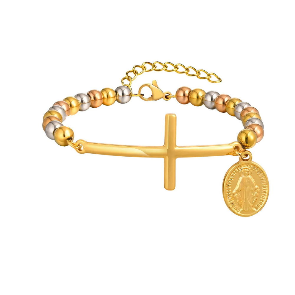 Magnifique Bracelet composé d'une Croix et pendentif de la Vierge Marie