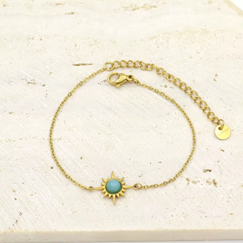 Illuminez votre poignet avec notre bracelet soleil bohème. Fabriqué en acier inoxydable, ce bijou est conçu pour vous offrir le look bohème que vous méritez d'avoir. La beauté du soleil et de sa pastille de couleur vous permettra de recevoir toute la lumière du monde.