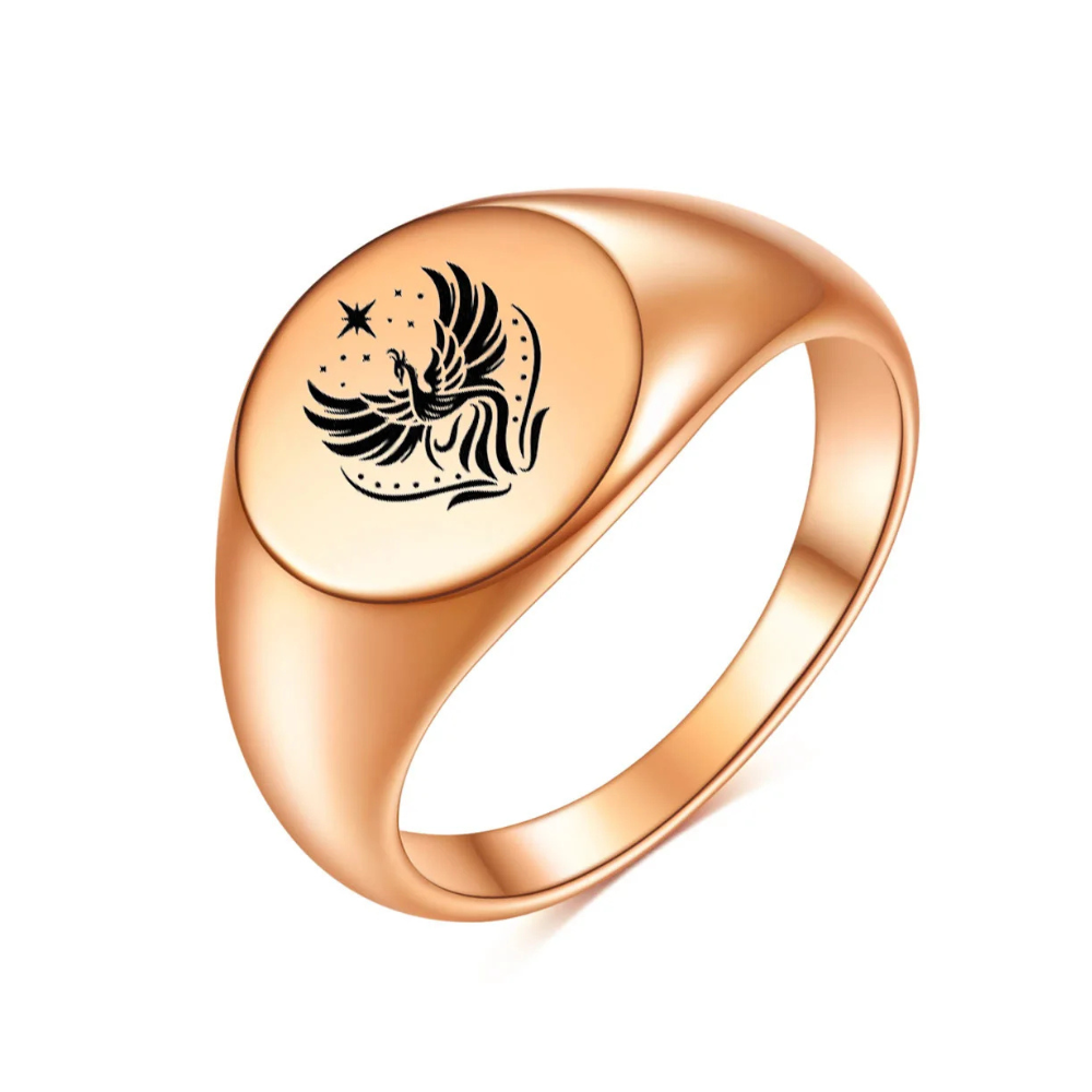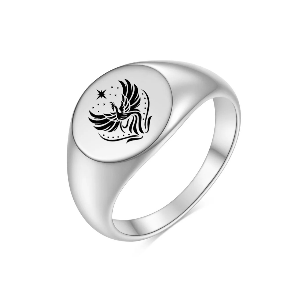 Exprimez votre force et votre résilience avec cette chevalière phœnix gravée avec précision.