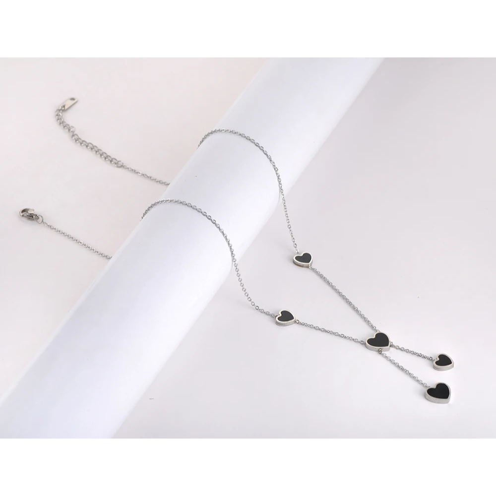 Design : 5 pendentifs cœurs noirs, dont deux suspendus en cascade