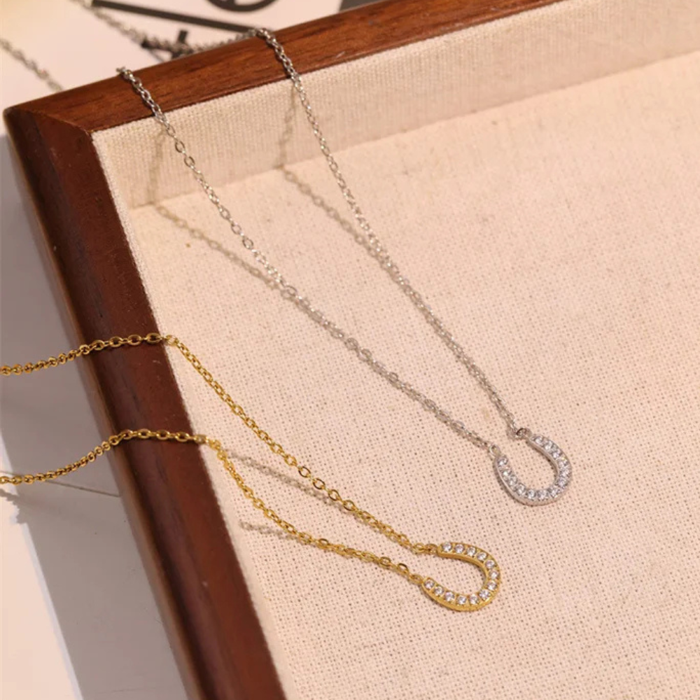 Ce collier fer à cheval fille est le choix idéal pour offrir un bijou délicat, brillant et symbolique. Son pendentif en forme de fer à cheval, finement incrusté de strass étincelants, apporte une touche lumineuse tout en représentant la chance et la protection. Léger et discret, ce collier se porte facilement au quotidien, seul ou associé à d’autres bijoux.