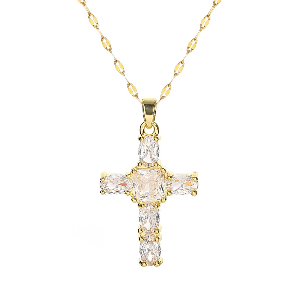 Fantastique Collier composé d'un Pendentif Croix en Zircon
