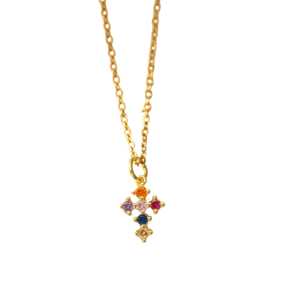 Caractéristiques du Collier avec Petite Croix sertie de pierre Multicolore :