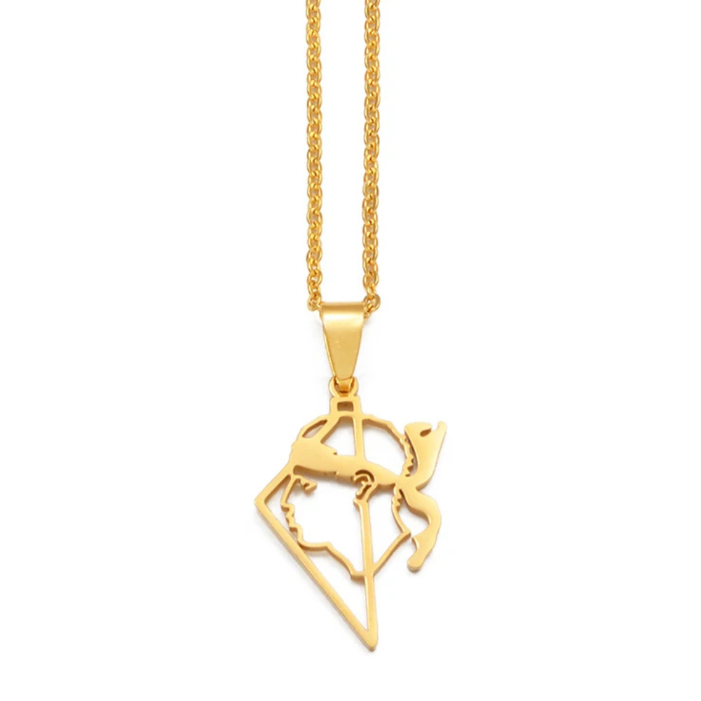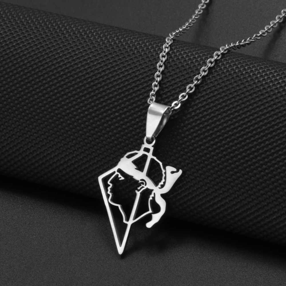 Représentant un symbole emblématique, ce collier tête corse met en avant le célèbre motif de la tête de Maure. Fabriqué en acier inoxydable, il est disponible en finition dorée ou argentée. Son design découpé lui confère une allure distinctive. ⚡