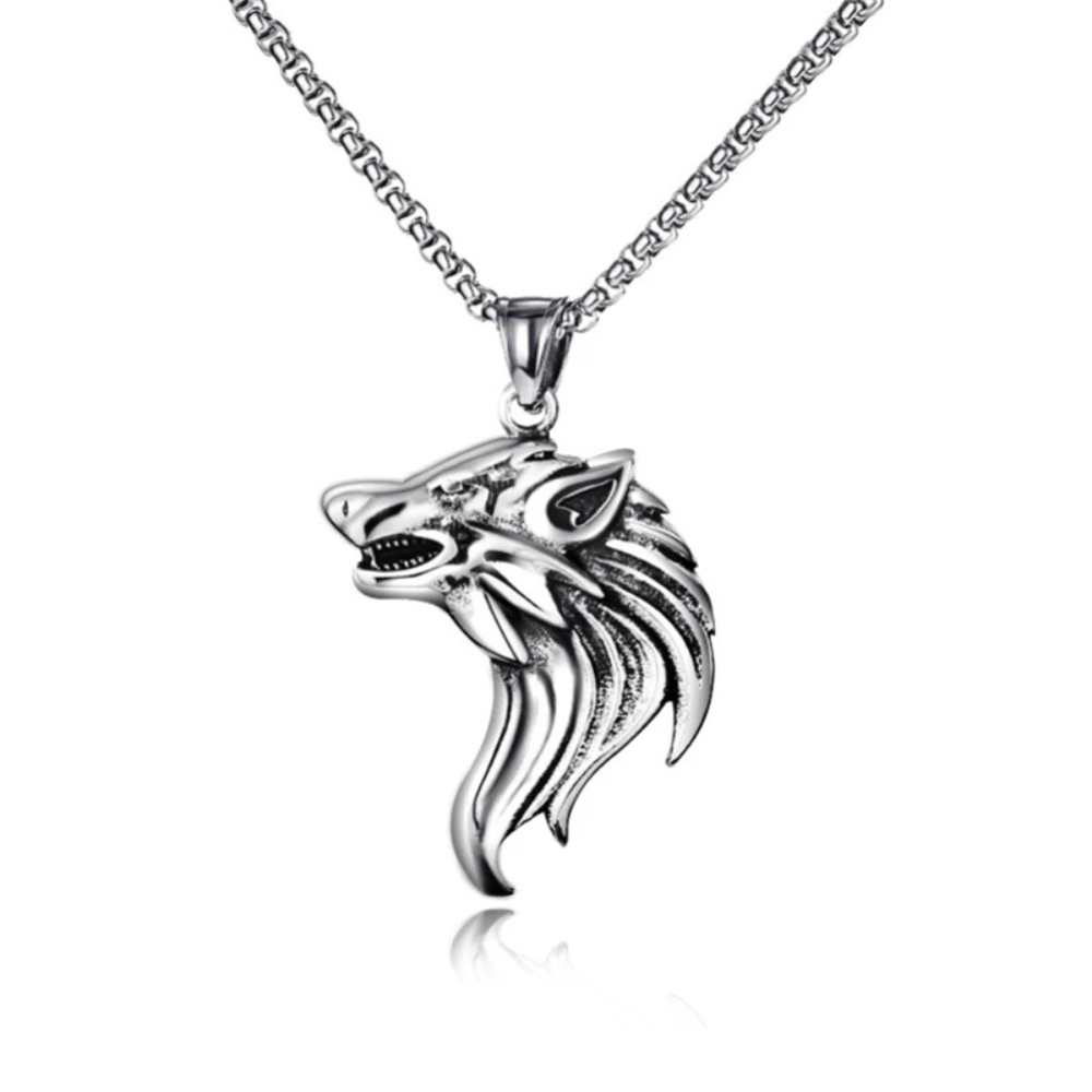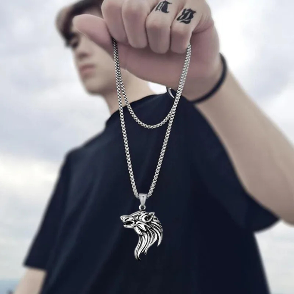 Ravissant Collier avec pendentif Tête de Loup idéal pour Homme