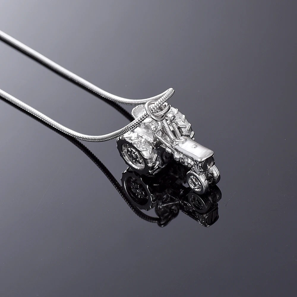 - Design : Pendentif détaillé représentant un tracteur avec roues et volant