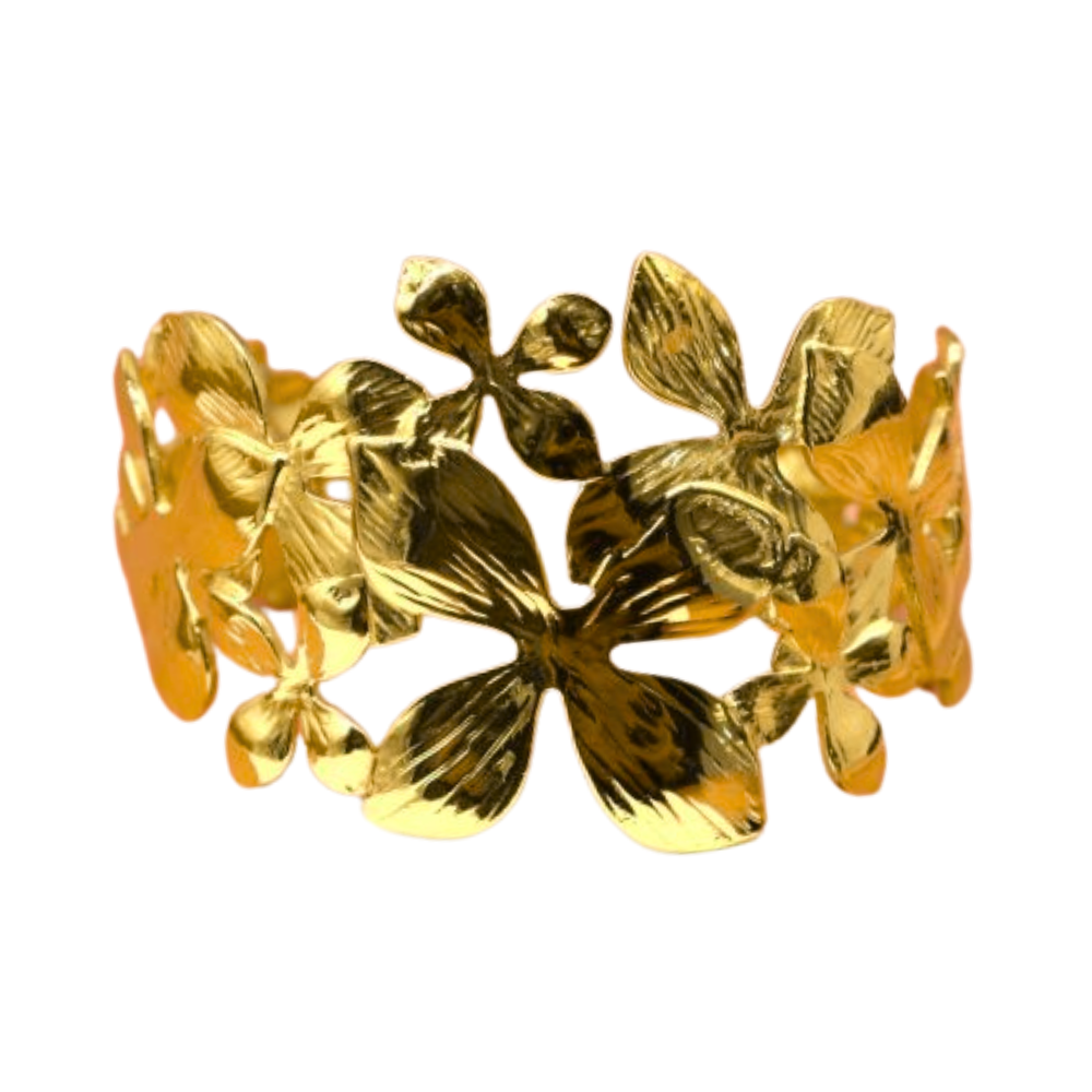 Un bijou lumineux et plein de charme. Ce gros jonc à fleurs gravées capte la lumière à chaque mouvement, révélant un éclat intense. Son design ajouré donne une impression de légèreté. Idéale pour habiller un look simple ou compléter une tenue chic, il évoque la nature dans toute sa splendeur.