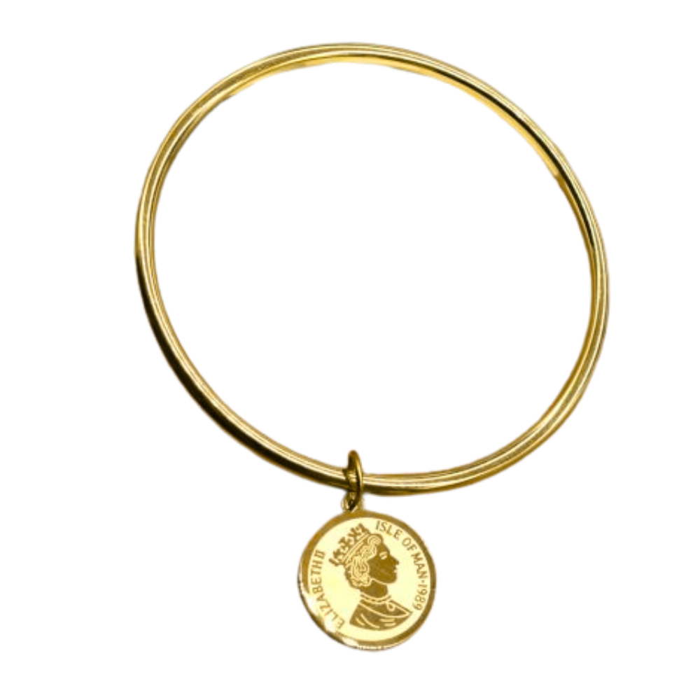Un bijou qui traverse le temps. Notre formidable jonc à breloque de l'Angleterre, se distingue par sa médaille en forme de pièce ancienne gravée du visage de la reine Elisabeth, apportant un style vintage et authentique. Il complète parfaitement un look moderne ou bohème. Léger et raffiné, il se porte seul pour une allure élégante ou en accumulation pour un effet plus marqué. Un vrai must-have pour les amoureuses de pièces uniques.