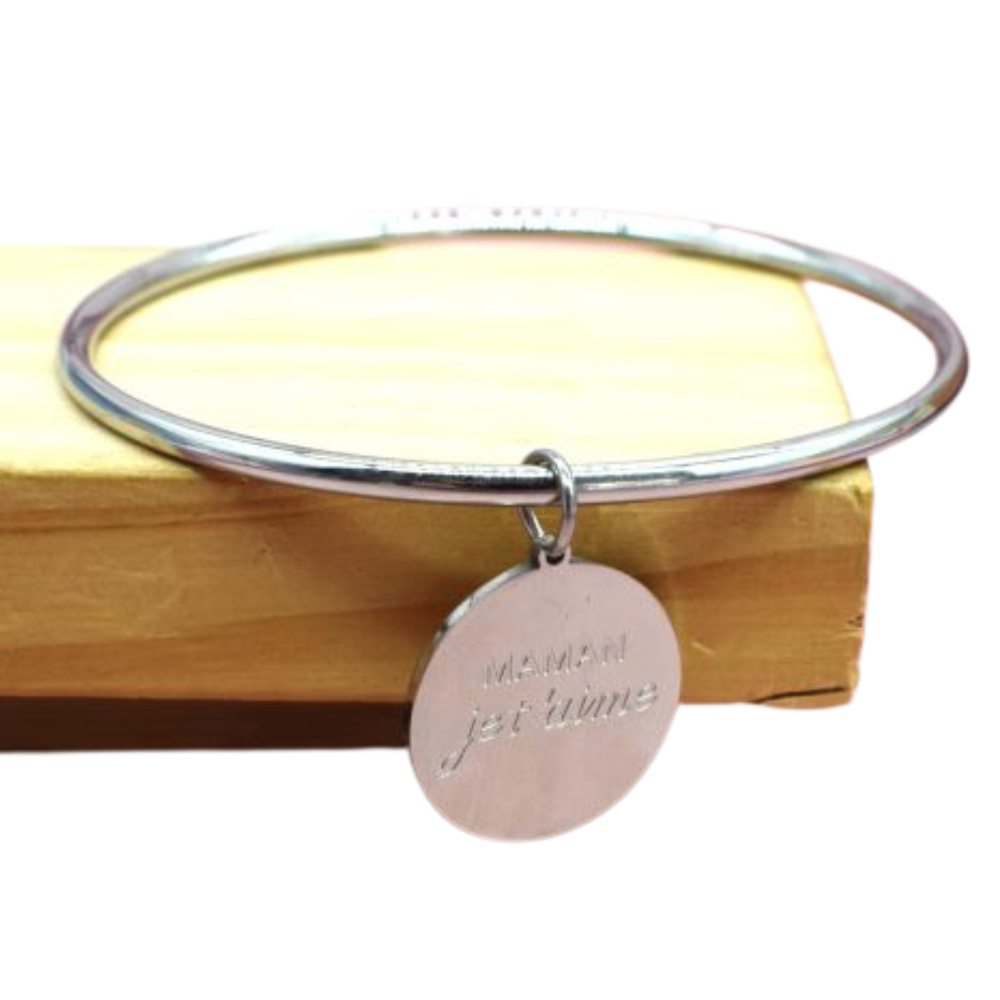 Merveilleux Jonc en acier inoxydable avec Breloque inscription Maman Je T'aime