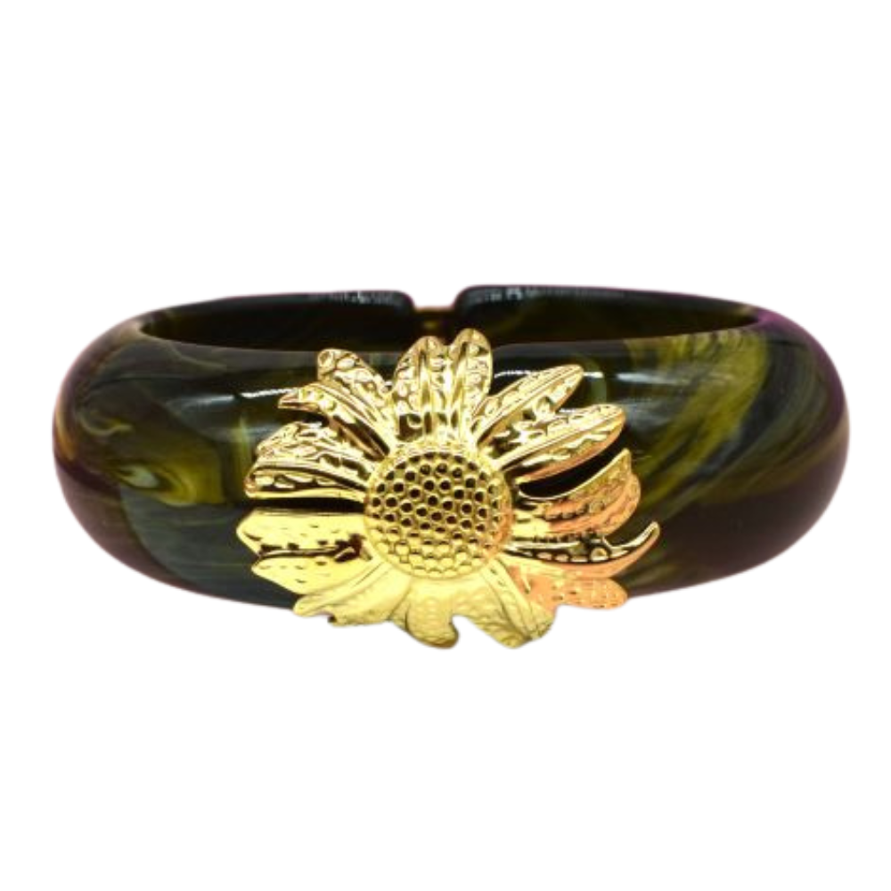 Laissez rayonner votre style avec notre resplendissant jonc en résine orné d’une fleur pâquerette. Entre éclat et contraste, il capture la lumière à chaque mouvement. Inspiré de la nature et du soleil, il évoque la vitalité et la joie. Audacieux, il sublime une tenue sobre avec caractère. Un bijou vibrant, parfait pour affirmer sa personnalité lumineuse.
