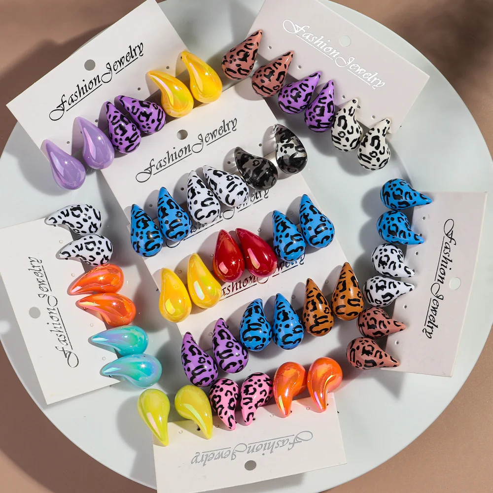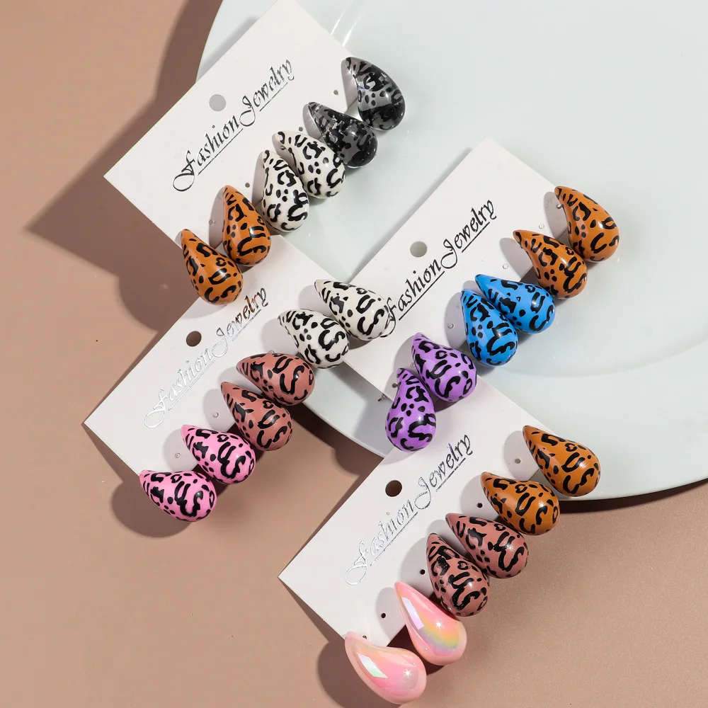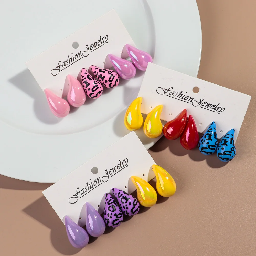 Set of 3 Pairs of Water Drop Stud Earrings: in Different Colors for Women earrings for women